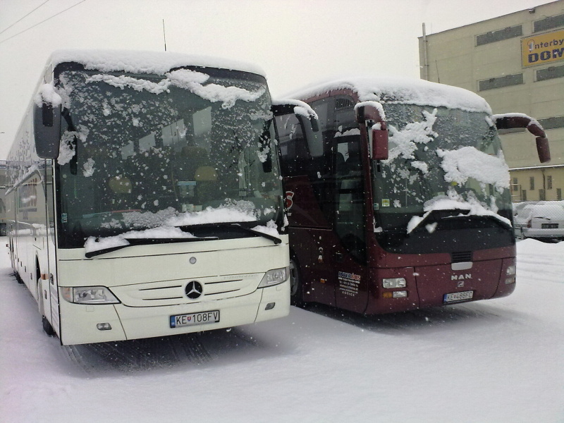 Fotografie Mercedes-Benz R2 Tourismo 17 RHD-L KE-108FV INTERBUS | MAN R08 Lions Coach L KE-486FC INTERBUS | Košice, areál Interbus | evidencia-dopravcov.eu