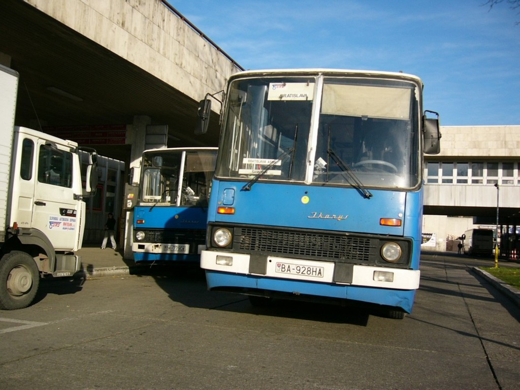Fotografie Ikarus 280.08/A BA-928HA SAD Bratislava | Ikarus 280.10 BA-779CI SAD Bratislava | Renault S 120 Midliner BA-263LB SAD Bratislava | Bratislava-Mlynské Nivy, Autobusová stanica | evidencia-dopravcov.eu