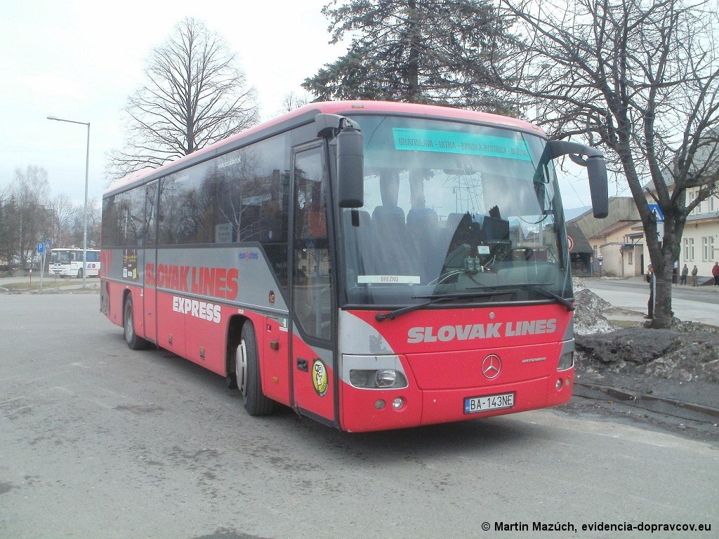 Fotografie Mercedes-Benz O 560 Intouro BA-143NE Slovak Lines | Brezno, železničná stanica | evidencia-dopravcov.eu