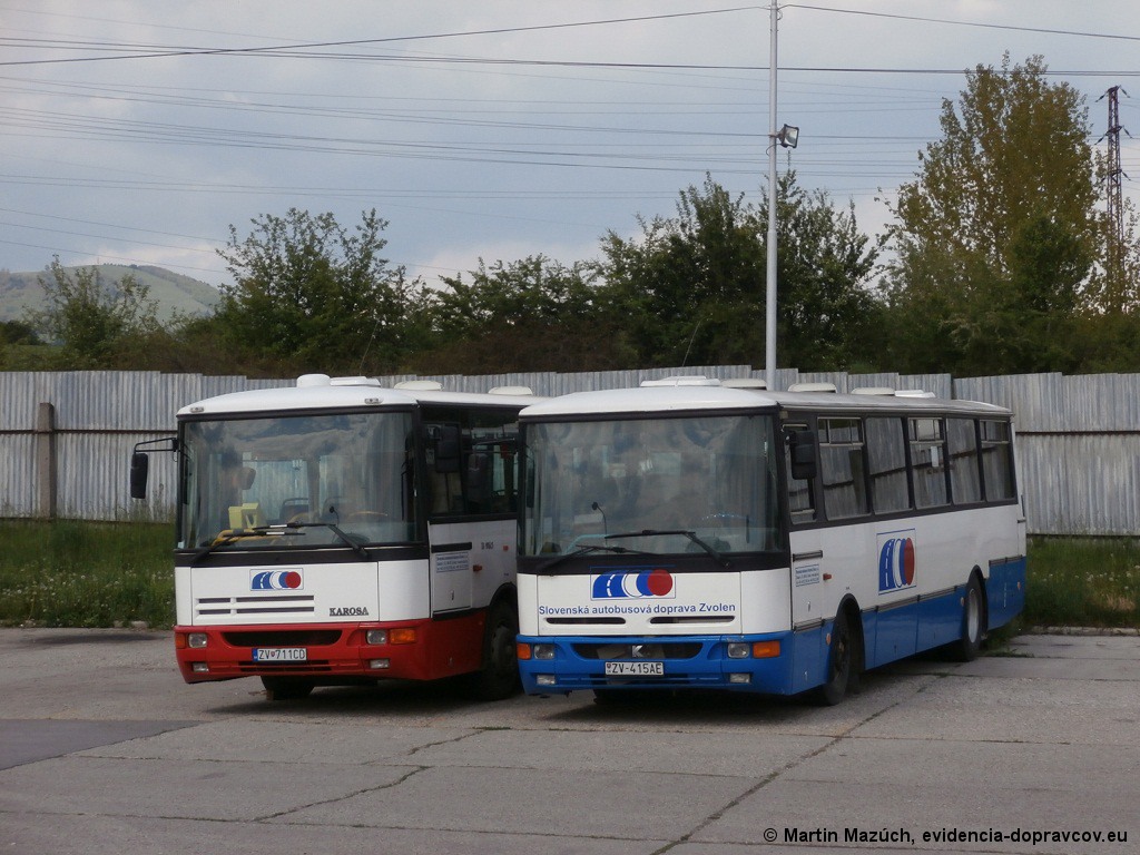 Fotografie Karosa C 934.1351 ZV-415AE SAD Zvolen | Karosa B 952.1712 ZV-711CD SAD Zvolen | Banská Bystrica, garáž SAD | evidencia-dopravcov.eu