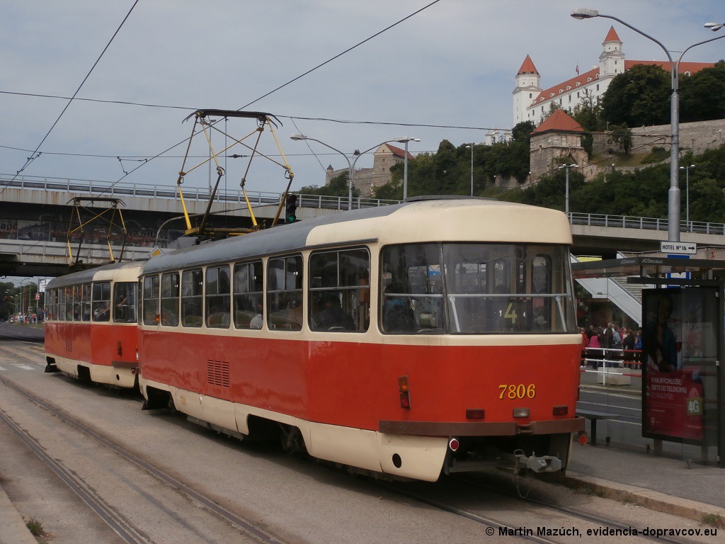 Fotografie ČKD Tatra T3/VI.SUCS 7805 DP Bratislava | ČKD Tatra T3/VI.SUCS 7806 DP Bratislava | Bratislava-Staré Mesto, nábrežie Dunaja | evidencia-dopravcov.eu