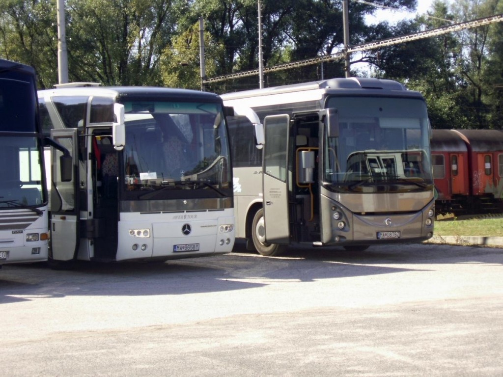 Fotografie Mercedes-Benz O 350 RHD Tourismo MA-965BY AWERTOUR | Iveco Evadys H 12M MA-087BZ Jozef Hermann - ZEUS | Šaštín-Stráže | evidencia-dopravcov.eu