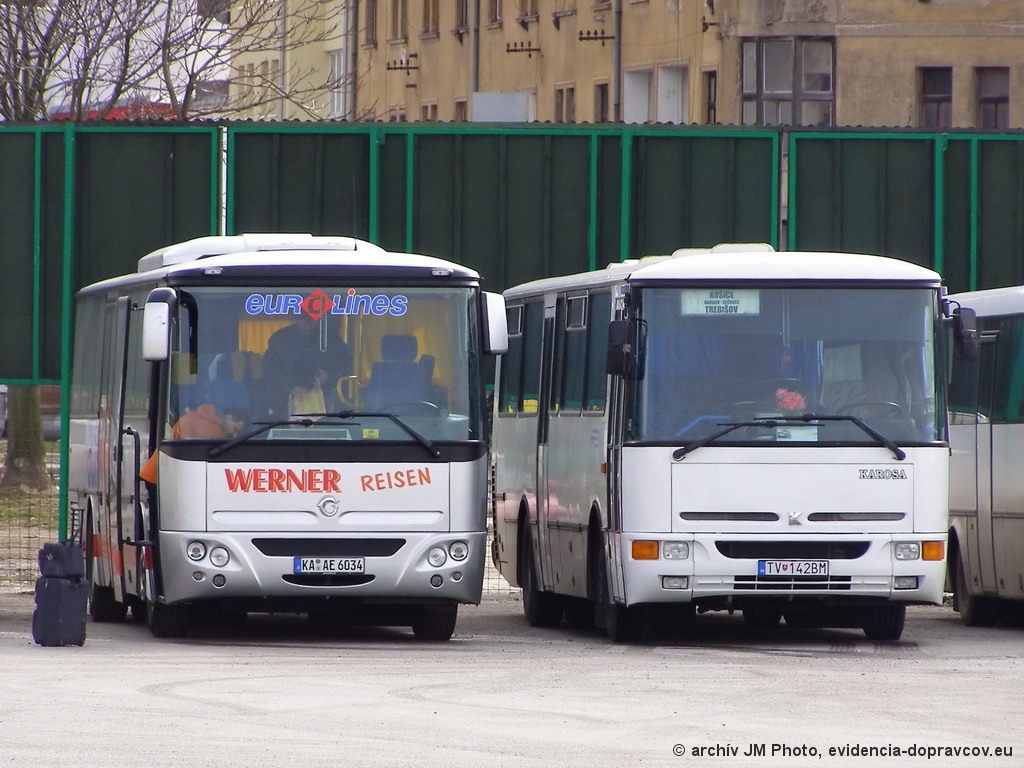 Fotografie Karosa C 956.1074 Axer 12M KA-AE6034 Werner Reisen | Karosa C 734.1340 TV-142BM SAD Michalovce | Košice | evidencia-dopravcov.eu