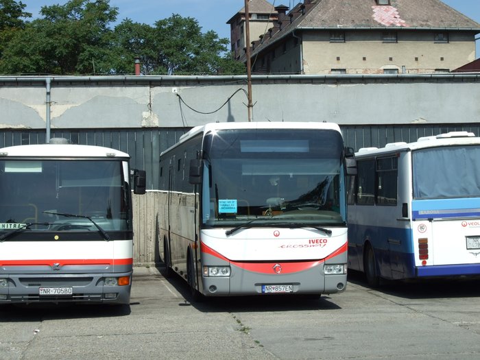 Fotografie Karosa C 954.1360 NR-705BO Veolia Transport Nitra | Iveco Crossway 12,8M NR-857EN Veolia Transport Nitra | Karosa C 734.1340 NR-042BK Veolia Transport Nitra | Nitra, Autobusová stanica | evidencia-dopravcov.eu