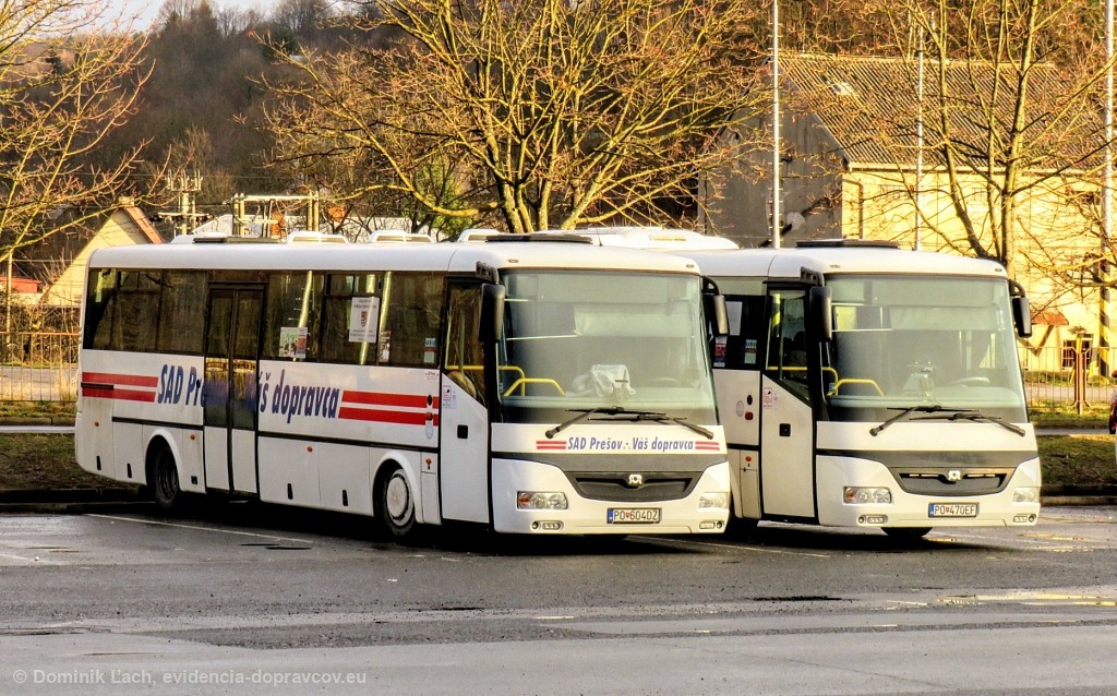 Fotografie SOR C 10,5 PO-604DZ SAD Prešov | SOR C 10,5 PO-470EF SAD Prešov | Bardejov, Autobusová stanica | evidencia-dopravcov.eu
